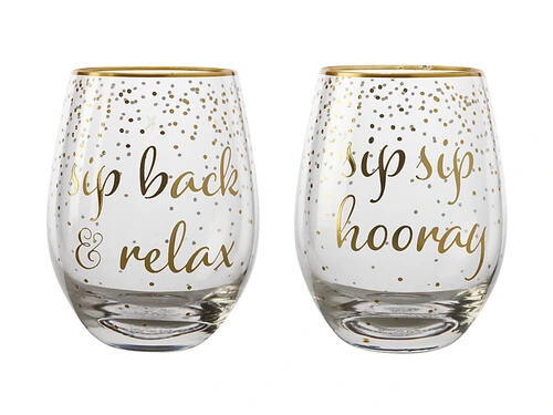 Treat yourself to some Christmas cheer with these cheeky Celebrations glasses. Each pair of stemless glasses features a duo of humorous phrases, illustrated in sparkling gold script for a touch of glamour. Celebrations glasses are equally suitable for drinks or your favourite Christmas desserts. Gift boxed in sets of two, they make an original and quirky Christmas present, or a delightful addition to your own festive spread.