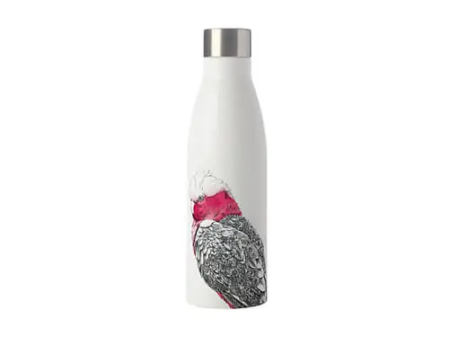 This drink bottle from the Marini Ferlazzo collection features an intricate illustration of a Galah on a crisp white background. Each bottle in the collection is made of quality stainless steel with a double wall structure, helping to keep your drinks at a steady temperature for an extended period of time. Each bottle has a slim design, twist top lid and matte finish.